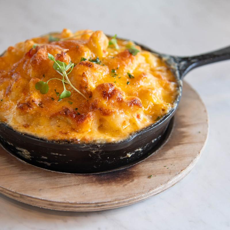Shrimp, crab, lobster, creamy five cheese mac.
